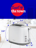 - Illuminated toast cancel button automatically stops toasting and lifts the slotted bread