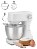 Stand Mixer Attachments Included: Stainless steel mixing attachments include a flat beater with scraper, whipping whisk attachment and dough hook for various tasks and efficient baking & mixing.