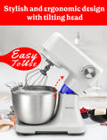 Stays in Place: Our Baking Mixer utilizes suction pad feet to keep the standing mixer in place whether tilting the mixer head back and even during rough and heavy mixing use.