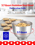 No Splash Zone: Dishwasher safe 3.7-Qt stainless steel mixing bowl is the perfect size for cake batter, cookie and bread dough mixer. Comes with a splash guard to contain splatter and spills.